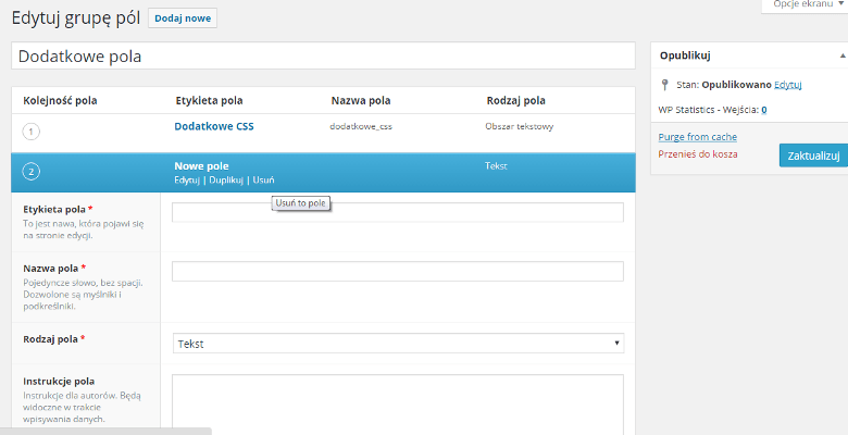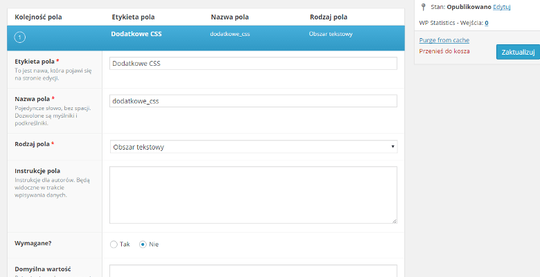 Własne pola we wpisie, na stronie